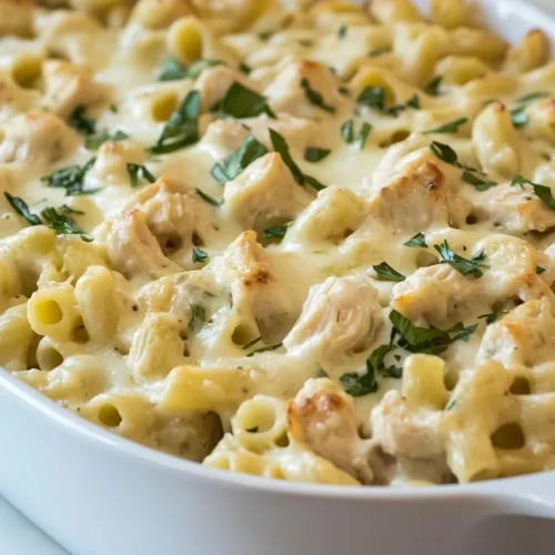 Creamy Chicken Alfredo Pasta Casserole is a dish that brings comfort and satisfaction to the table. With its rich, velvety sauce enveloping tender pieces of chicken and perfectly cooked pasta, it’s a meal that appeals to both children and adults alike. Ideal for weeknight dinners, family gatherings, or potlucks, this casserole shines in its ability to please a crowd. The combination of creamy Alfredo sauce, chicken, and pasta creates a flavor that is both hearty and indulgent. What sets this dish apart is its convenience; it can be prepared ahead of time and simply baked when ready to serve. Whether you are looking to impress guests or need a quick meal for the family, the Creamy Chicken Alfredo Pasta Casserole is a versatile choice that never disappoints.