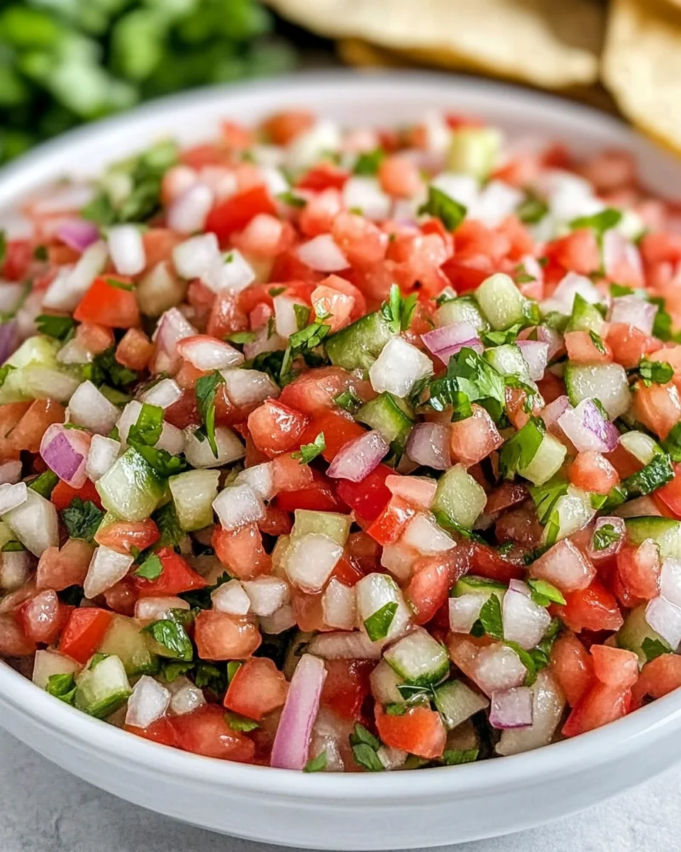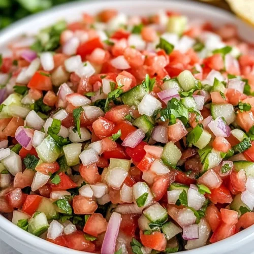 The Fresh and Flavorful Pico de Gallo Recipe is a vibrant and zesty salsa that showcases the best of fresh ingredients. This traditional Mexican dish is known for its bold flavors and refreshing qualities, making it an essential accompaniment for various meals. Perfect for summer gatherings or cozy weeknight dinners, pico de gallo adds a burst of freshness to tacos, grilled meats, or even enjoyed on its own with tortilla chips. Its simplicity is its strength, appealing to a wide audience, including families looking for healthy and delicious additions to their meals. With its bright colors and lively taste, the Fresh and Flavorful Pico de Gallo Recipe stands out as a versatile condiment that elevates any dish.