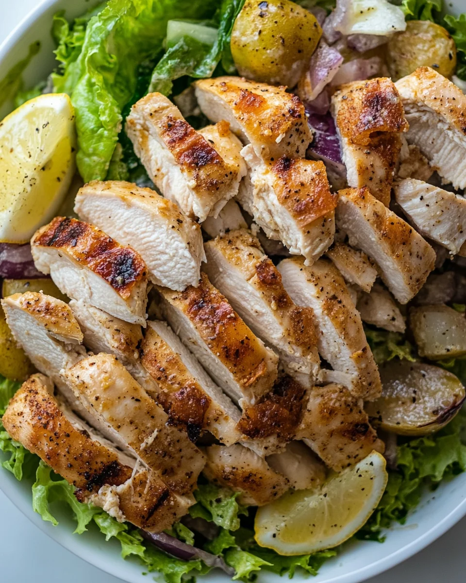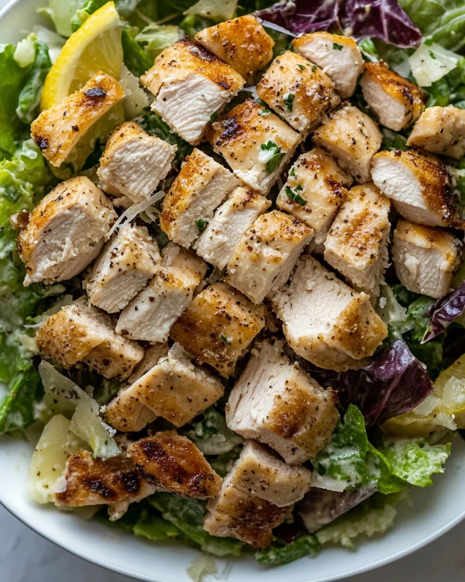 - To serve, transfer the Fresh Lemon Parmesan Chicken Salad to individual plates or a large serving bowl. This salad is best enjoyed immediately while the greens are crisp and the chicken is warm.