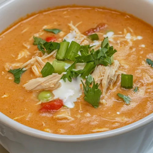 Homemade Buffalo Chicken Soup That’s Deliciously Hearty is a warm, comforting bowl of goodness that perfectly blends the bold flavors of buffalo sauce with tender chicken and hearty vegetables. This soup is not just a meal; it’s an experience, ideal for cozy family dinners or quick weeknight meals. The spicy, tangy kick from the buffalo sauce harmonizes with the creamy broth, creating a delightful balance that appeals to both spice lovers and those seeking something comforting. The richness of the soup, combined with its nourishing ingredients, makes it a favorite among all ages, ensuring that everyone at the table will be satisfied. With the ability to serve this soup during casual gatherings or festive occasions, it stands out as a versatile dish that warms the heart and soul.