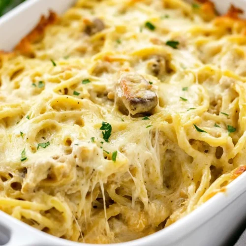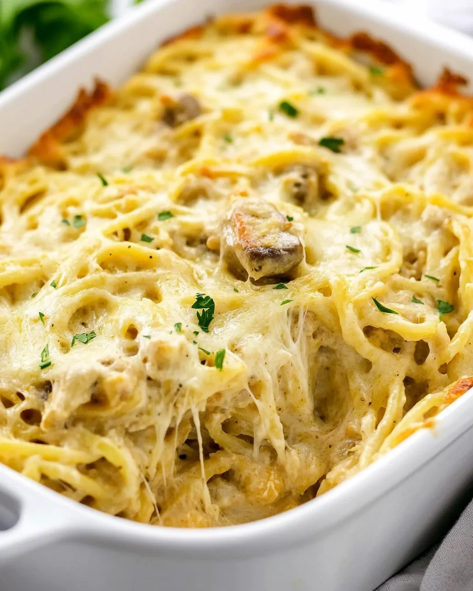 This Homemade Turkey Tetrazzini for a Cozy Night In stands out for several compelling reasons. First, the flavor profile is a harmonious blend of savory turkey, earthy mushrooms, and a creamy sauce that coats every strand of pasta. Each bite is a comforting reminder of home-cooked meals, making it perfect for family dinners. Secondly, its ease of preparation makes it accessible for cooks of all skill levels. With straightforward ingredients and a simple cooking method, you can whip up this dish without spending hours in the kitchen. Moreover, the texture is another highlight; the combination of creamy sauce, tender turkey, and al dente pasta creates a satisfying mouthfeel that keeps everyone coming back for seconds. Finally, this recipe’s versatility shines through as it can be adapted to include various vegetables or spices, allowing you to customize it according to your family’s preferences. All these factors make Homemade Turkey Tetrazzini for a Cozy Night In a dish you will love to prepare and enjoy.