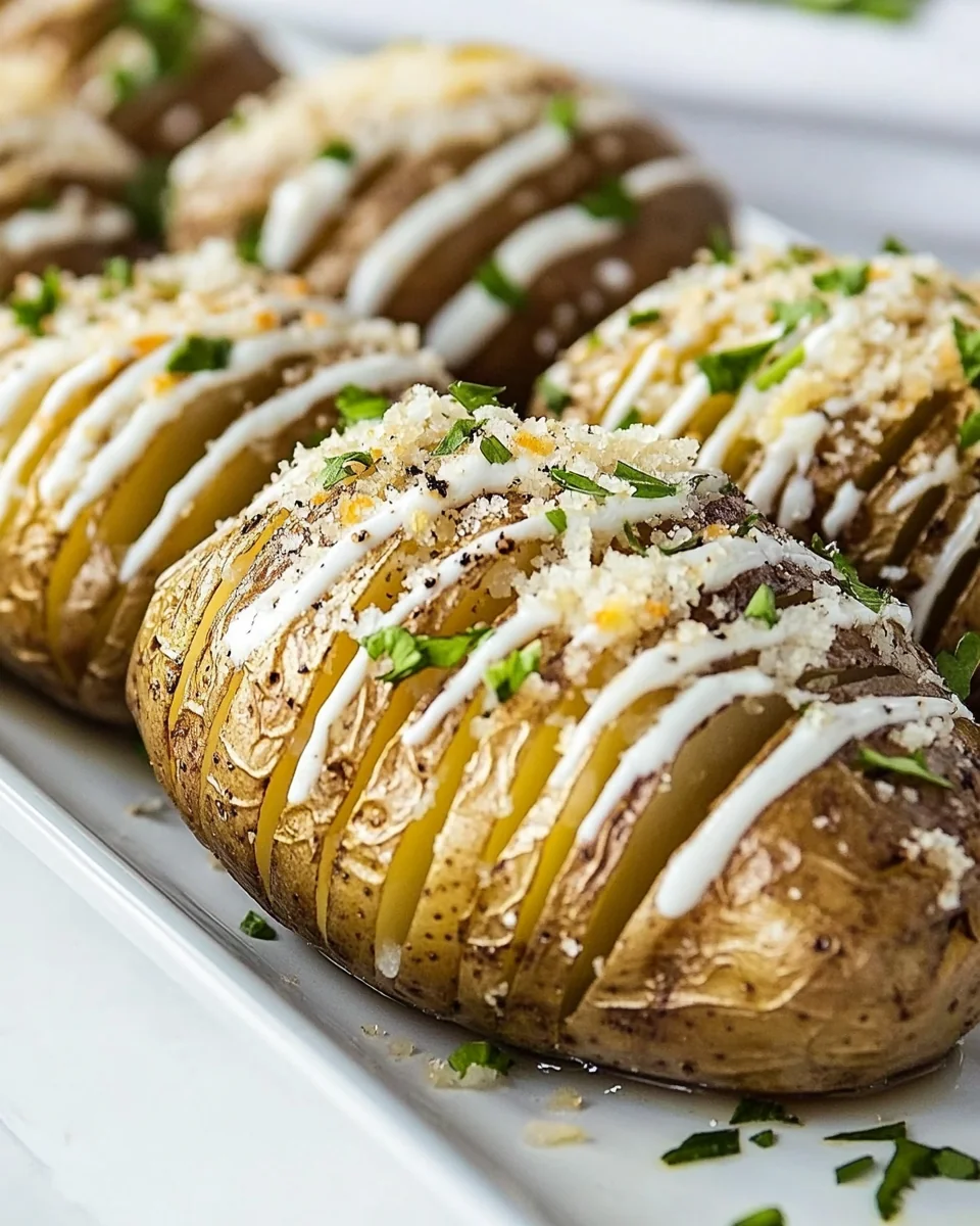 - Serve your Perfectly Crispy Hasselback Potatoes warm, garnished with a sprinkle of fresh herbs or additional cheese if desired. Enjoy the crispy edges and fluffy interior as a delightful side dish!