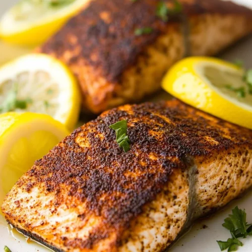 - Serve the blackened salmon immediately, garnished with fresh herbs or lemon wedges.