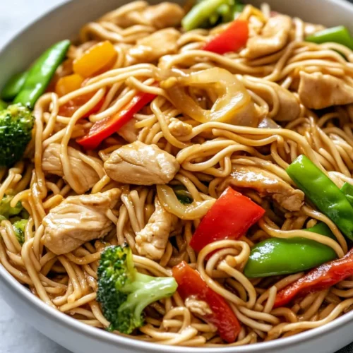 Simple Chicken Lo Mein: A Delicious Weeknight Meal is a perfect dish for busy families looking for a quick yet satisfying dinner. This iconic Chinese noodle dish is packed with flavor and can be made in under 30 minutes. The tender chicken, crisp vegetables, and savory sauces combine to create a meal that is both comforting and nutritious. With its balance of textures and vibrant colors, this dish appeals to both kids and adults alike, making it an ideal choice for a weeknight feast. Whether you’re cooking for a family gathering or simply a cozy dinner at home, Simple Chicken Lo Mein: A Delicious Weeknight Meal will surely impress.