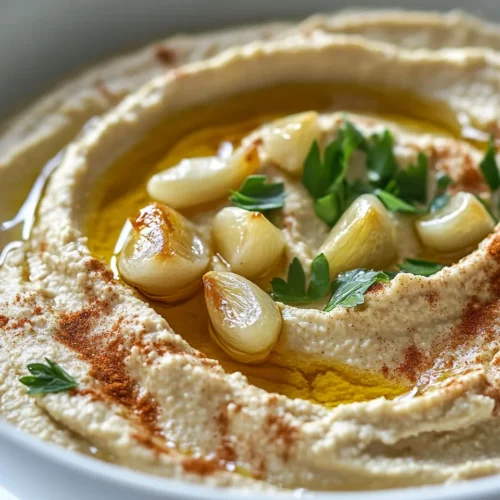 The Simple Roasted Garlic Hummus Recipe is a culinary gem that brings a delightful twist to the traditional hummus. This creamy dip is infused with the rich, sweet flavor of roasted garlic, elevating your snacking experience to new heights. Perfect for weeknight meals and family gatherings, this hummus appeals to a wide audience, making it a go-to option for entertaining guests or enjoying a quiet evening at home. Its standout quality lies in its silky texture and robust flavor, making it a versatile addition to your appetizer spread or a healthy snack on its own. Whether served with fresh vegetables, pita chips, or spread on sandwiches, this Simple Roasted Garlic Hummus Recipe is sure to impress.
